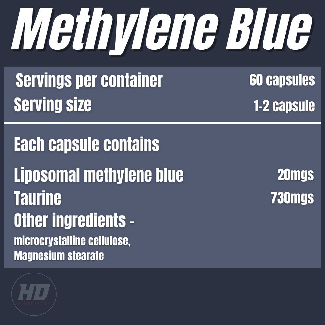 Your brain’s upgrade starts here. Methylene Blue is a potent nootropic and mitochondrial enhancer, formulated with 20 mg of Liposomal Methylene Blue and 730 mg of Taurine per serving. This advanced blend is designed to promote cellular energy, cognitive clarity, and neuroprotection, all in a convenient liposomal capsule format for superior absorption.