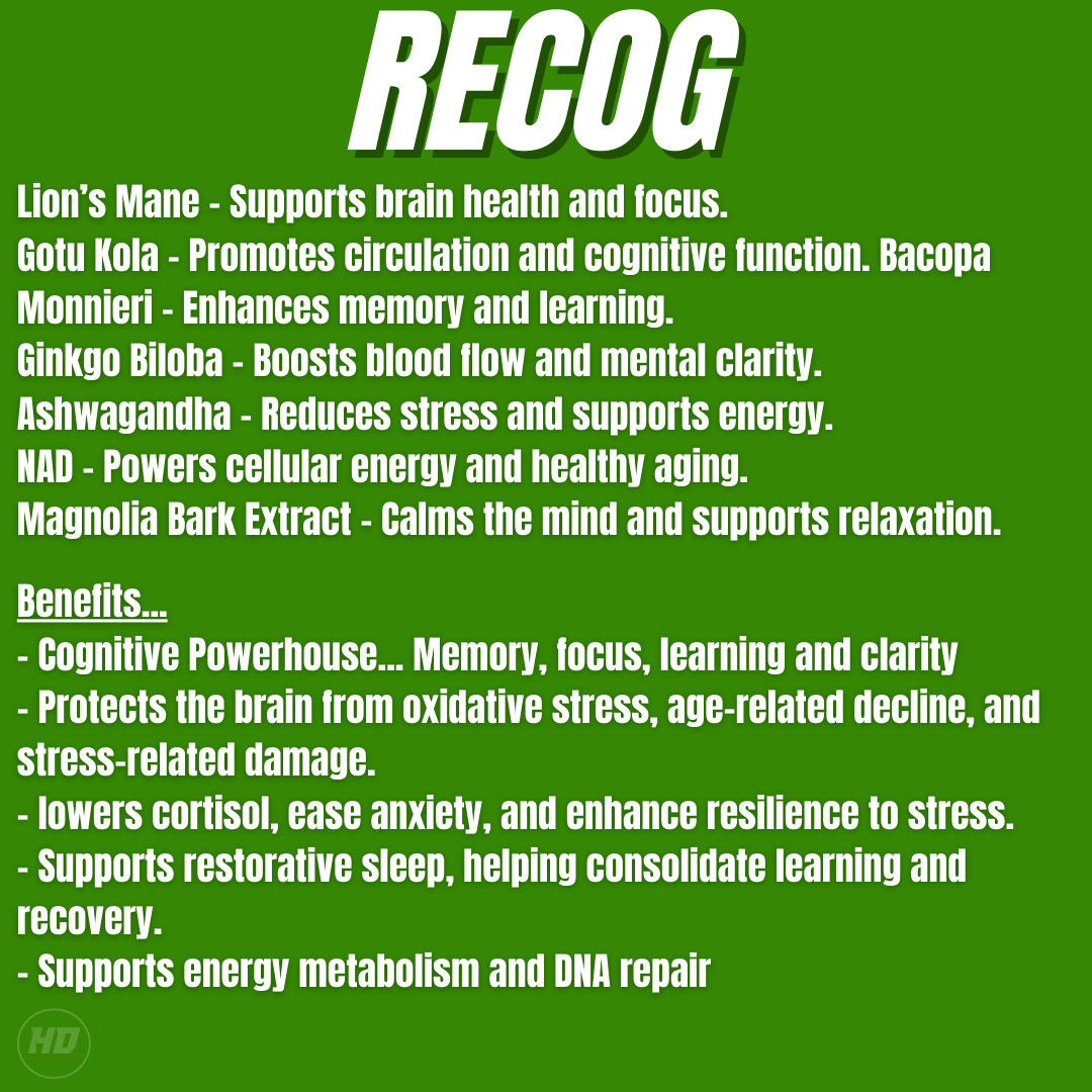 Recog is a premium, full-spectrum nootropic and cognitive wellness supplement designed to support focus, memory, mental clarity, and stress resilience. Packed with adaptogens, herbal nootropics, and neuroprotective compounds, Recog fuels your brain with what it needs to thrive in today’s fast-paced world.