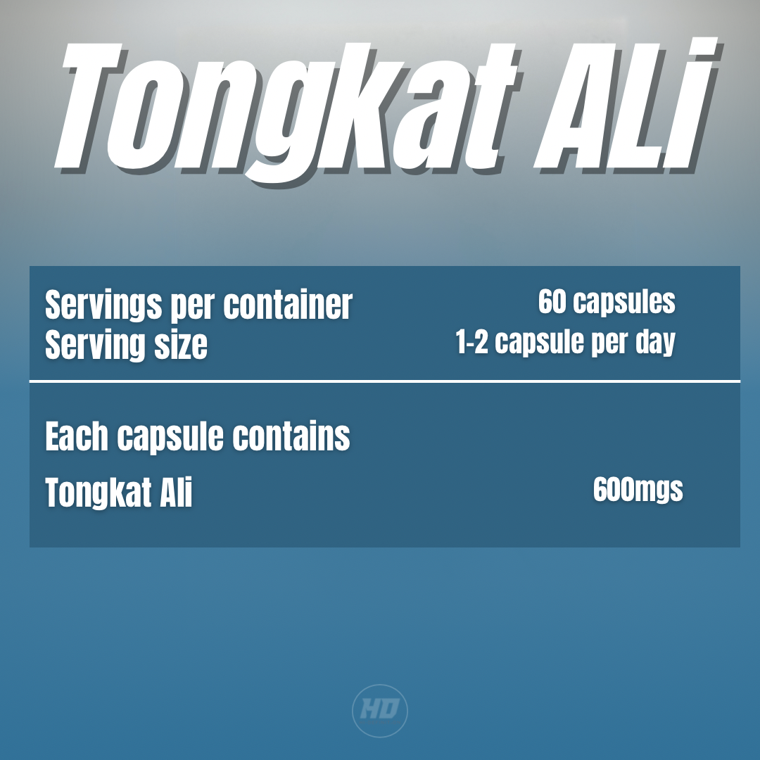 Dose per Capsule: 600mg Tongkat Ali extract